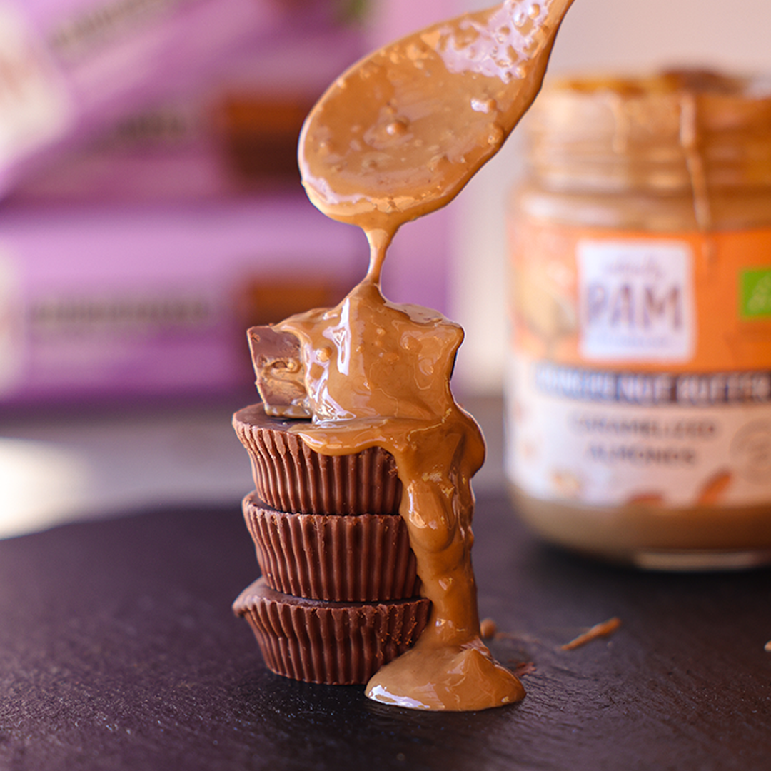 "Ein kleiner Moment mit großem Genuss. Wir alle lieben das #1 Bestseller Caramelized Almond Nussmus. Jetzt als Praline? Besser geht es nicht."
